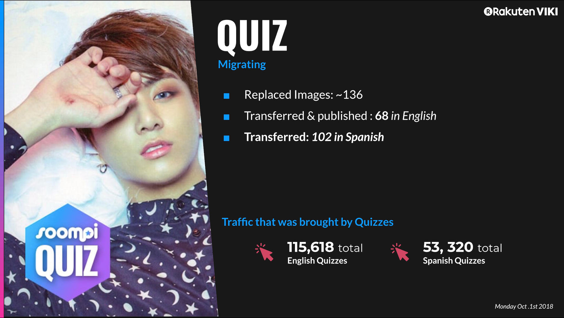 For both Spanish and english sites, I transferred over 170 Quizzes, which added up over 170 thousand additional page views on Soompi.